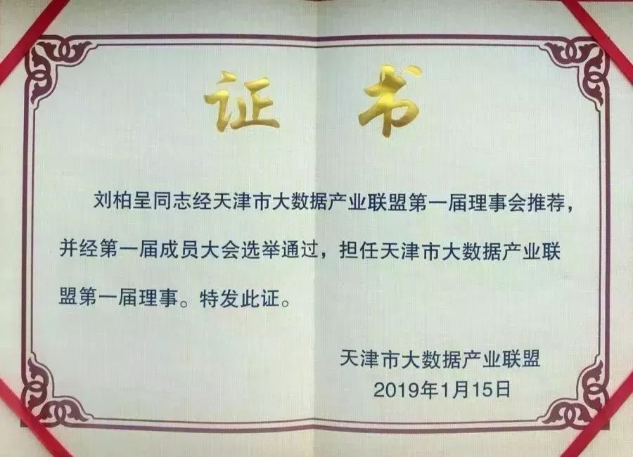 XC Sports物联董事长刘柏呈担任天津市大数据产业联盟第一届理事